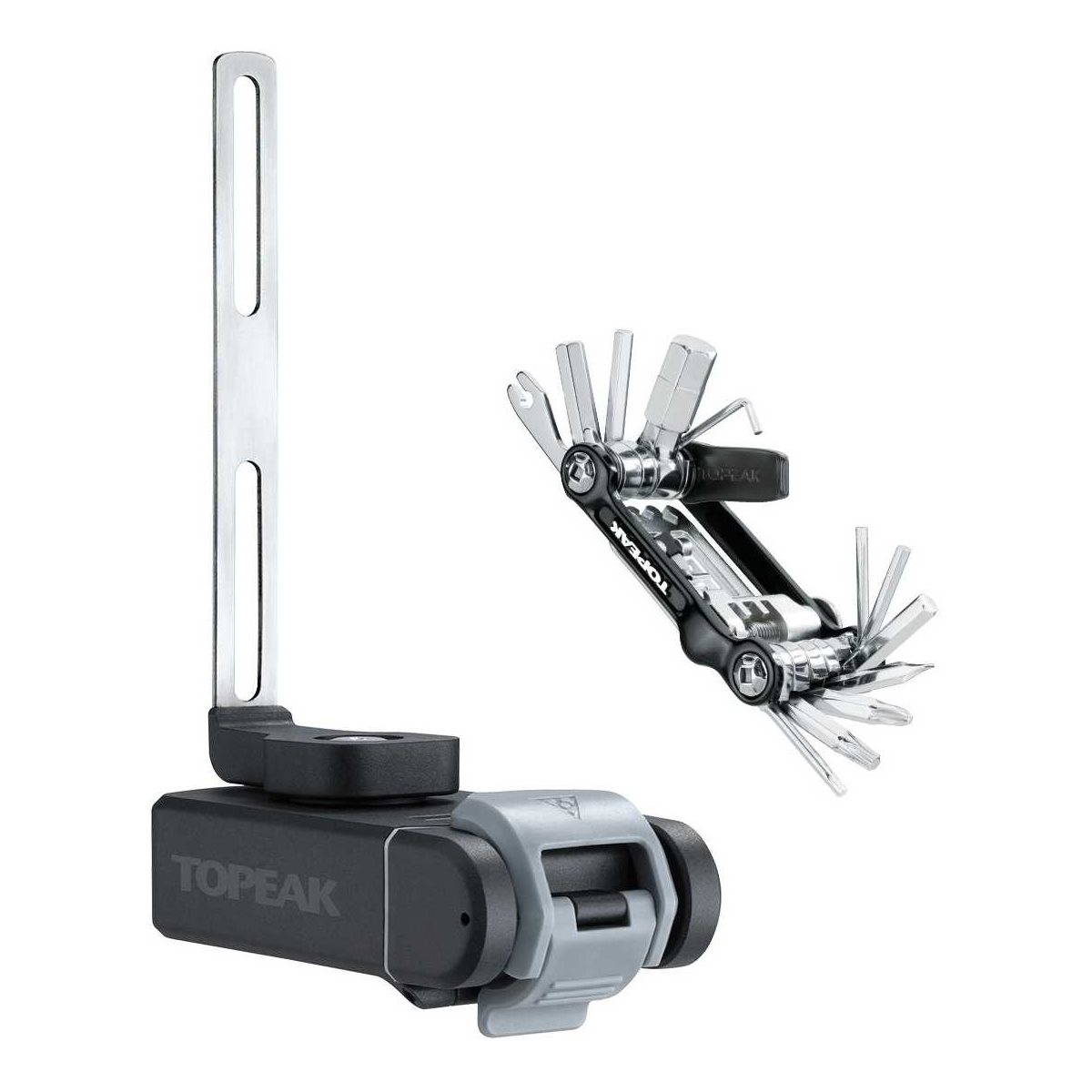 Enkel och smart lösning som hjälper dig att integrera nödvändiga prylar snyggt på din hoj!Skruva fast "Ninja T Mountain" mellan ramen och flaskstället och du får en smidig förvaring för ditt miniverktyg. Ninja Mini 20 miniverktyg medföljer.