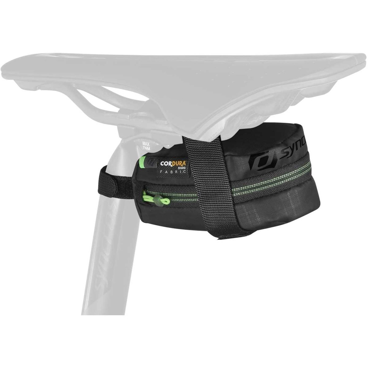 Den är tillverkad i slitstarkt P/305D Cordura Triple Rip och du fäster den enkelt med kardborre under sadeln och på sadelstolpen.