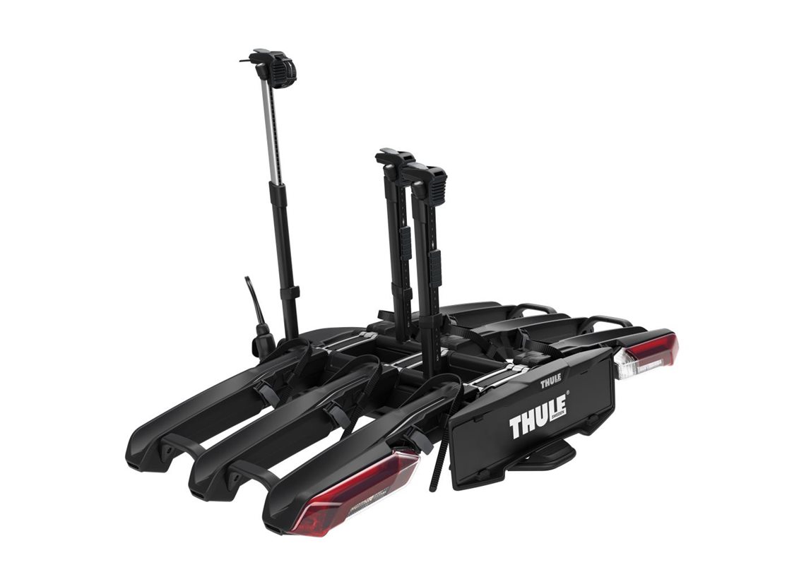Cykelhållaren Thule Epos 3B passar alla typer av cyklar och är snabb, enkel och smidig att använda – det krävs minimal ansträngning att lasta cyklar, tack vare ett innovativt, teleskopiskt fästsystem. Cykelarmarna gör att du kan fästa din cykel var som helst på ramen eller bakhjulet, vilket ger en mängd olika lastningsalternativ. Du kan lasta på och av upp till tre cyklar i vilken ordning du vill – alla typer av ramar och dimensioner stöds, inklusive elcyklar, mountainbikes, gravel bikes och cyklar med skärmar och hållare.