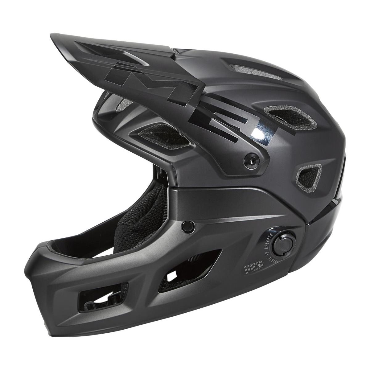 Hjälmen är utrustad med smarta Magnetic Chinbar Release, enkelt förklarat handlar det om en smått revolutionerande design som ser till att du med några enkla handgrepp kan fästa och ta bort hakskyddet inom par sekunder, dessutom utan att behöva ta av hjälmen från huvudet. Enligt oss är MET Parachute MCR den idealiska 2-i-1-lösningen för kräsna cyklister som vill kunna känna sig helt säkra på att hakskyddet inte lossnar!