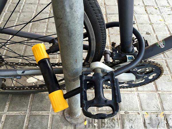 Undvik också att sätta låset runt ramens övre rör. När låset sitter där kommer det att vara med plats inne i låset och det är lättare att få in en domkraft. Tjuven kan också använda hela cykeln som hävstång och vända hela cykeln för att försöka vrida av låset. Det blir också lättare att komma åt låset med ett metallrör för att på så sätt vrida sönder låset. Bäst är alltså att använda triangeln eller den stående bakre stolpen i ramen.